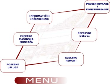 USLUGE ... ----------------------------------- PROJEKTOVANJE INFORMATICKI INŽENJERING REZERVNI DELOVI ELEKTRO REMONT ELEKTRO-MAŠINSKA MONTAŽA POSEBNE USLUGE
